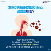 RSV 감염은 가을, 겨울 및 초봄에 가장 흔합니다. 미국에서 RSV는 1세 미만 어린이의 세기관지염(폐에 있는 작은 기도의 염증) 및 폐렴의 주요 원인입니다. 그러나 RSV 감염은 모든 연령대의 개체에서 발생할 수 있으며 경증에서 중증까지 다양합니다.
