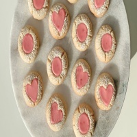 1.Red Velvet Thumbprint Cookies: 이 쿠키는 완벽한 발렌타인 데이 간식입니다. 기본 지문 쿠키 반죽으로 시작하여 코코아 가루와 빨간색 식용 색소를 믹스에 추가합니다. 쿠키가 구워지고 식으면 크림 치즈 프로스팅으로 홈을 채웁니다.